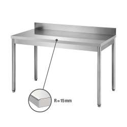 Table ouverte démontée - avec dosseret sans étagère - dessus inox 15/10ème H 4 cm P 80 cm H 90 cm - 4 pieds tube rond diamètre 50 mm (décalage des pieds arrière de 10 cm) - Fabrication AISI 304
