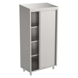 Armoire verticale toit penté - 2 Portes coulissantes 50 cm - H 210 cm - 3 étagères réglables - pieds réglables H 14 à 23 cm